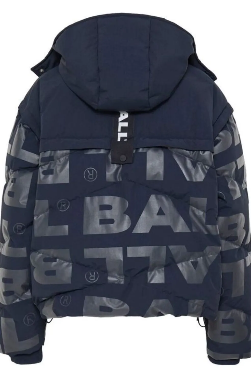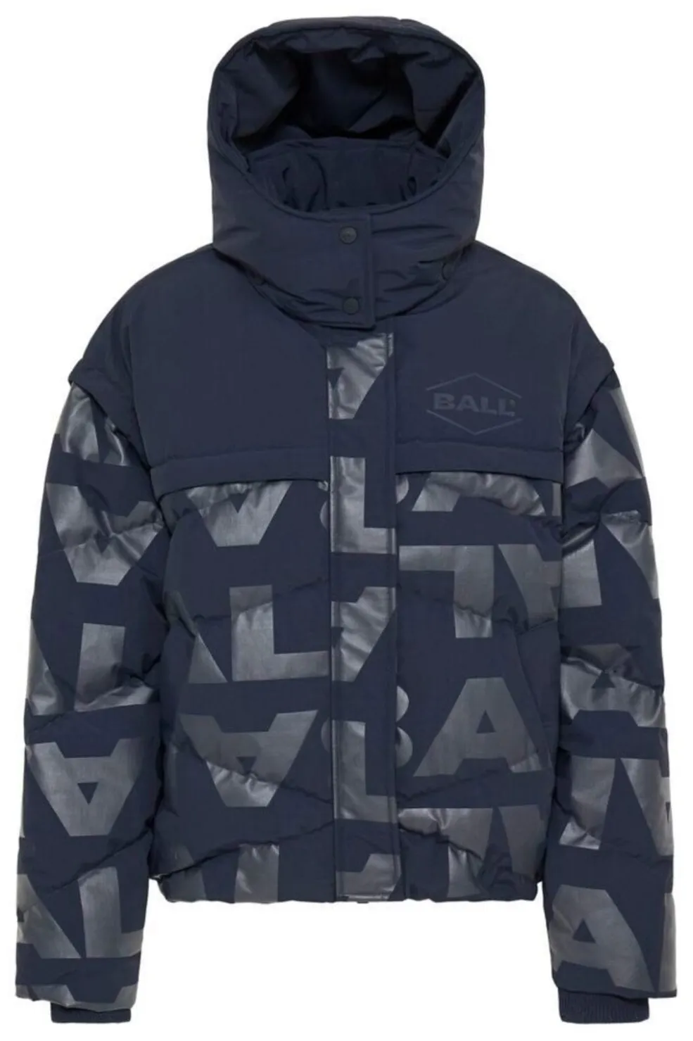 Jakke fra Ball i mørkeblå med grafisk print af store bogstaver. Lavet af vævet materiale med coating.