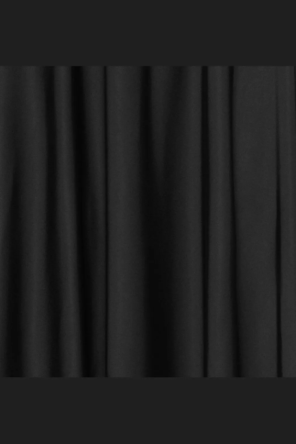 Sort nederdel fra Karmamia i halvblankt satin. Den har en høj talje med rynker og dekorative syninger. Nederdelen går til midt på læggen og har en løs pasform.