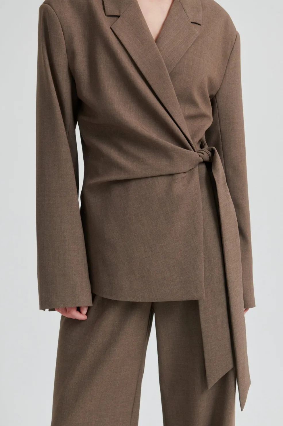 Wrap blazer fra Second Female i brun melange. Blazeren passer til både formelle anledninger, hverdagen og festlige lejligheder.