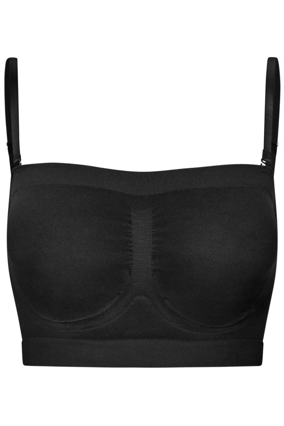 Sort bandeau-bh fra Lykkeland Ateliér med glat overflade og midtersøm. En enkel bh med rund form og god støtte.