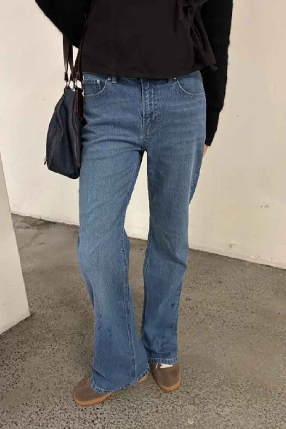 Lyseblå jeans fra Global Funk med femlomme-design og flared ben. Bukserne har en klassisk stil med knap- og lynlåslukning i taljen.