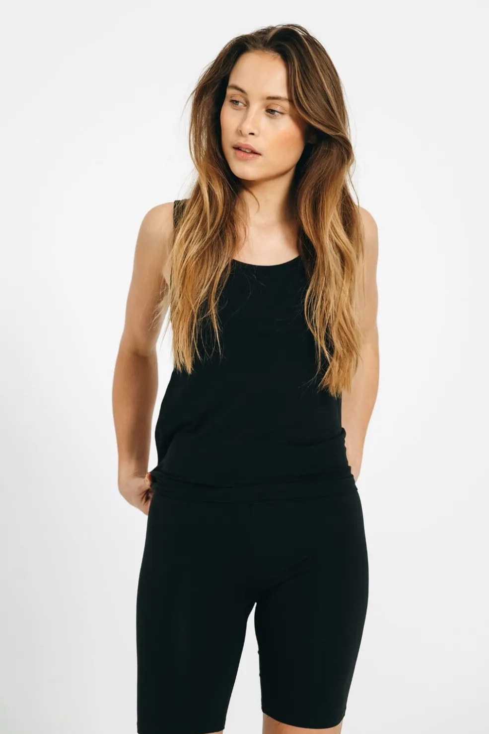 Sorte shorts fra Decoy, lavet af bambusviskose, bomuld og elastan. Shortsen har en tætsiddende pasform og når til midt på låret.