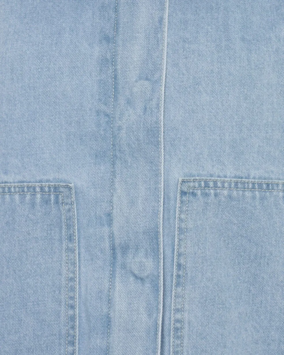 Lys blå denimjakke fra Moves by Minimum med cropped design. Jakken har skjortekrave, knaplukning og to store frontlommer. Den korte længde og den lyse farve giver et friskt udtryk.