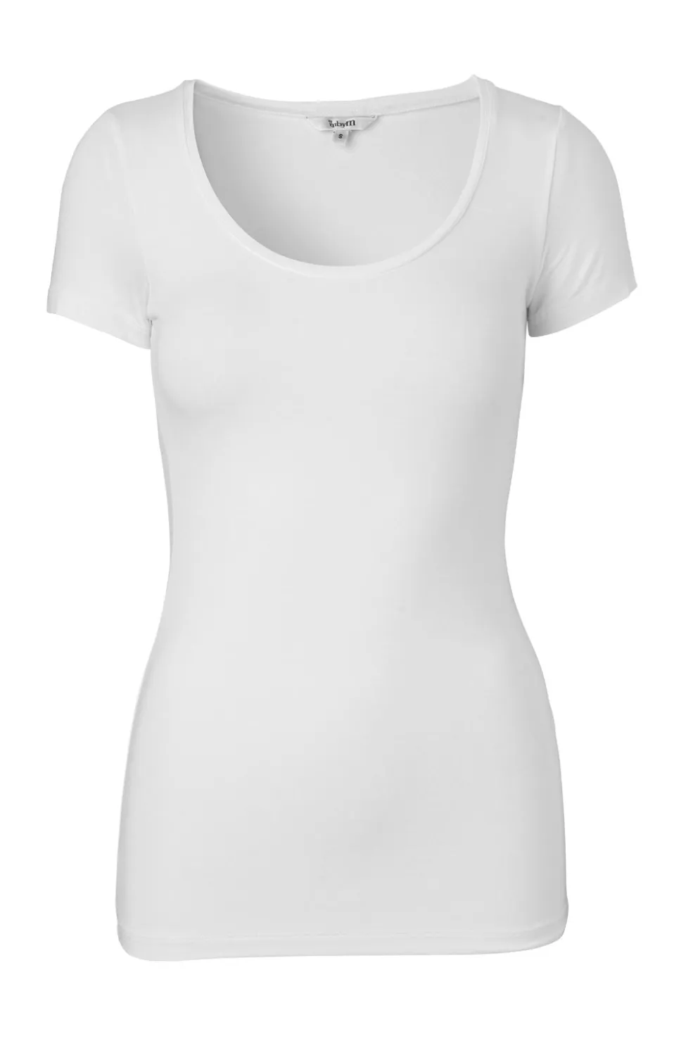 Hvid t-shirt fra MbyM i blødt Modal TENCEL-materiale. T-shirten har en tætsiddende pasform med rund hals og korte ærmer.