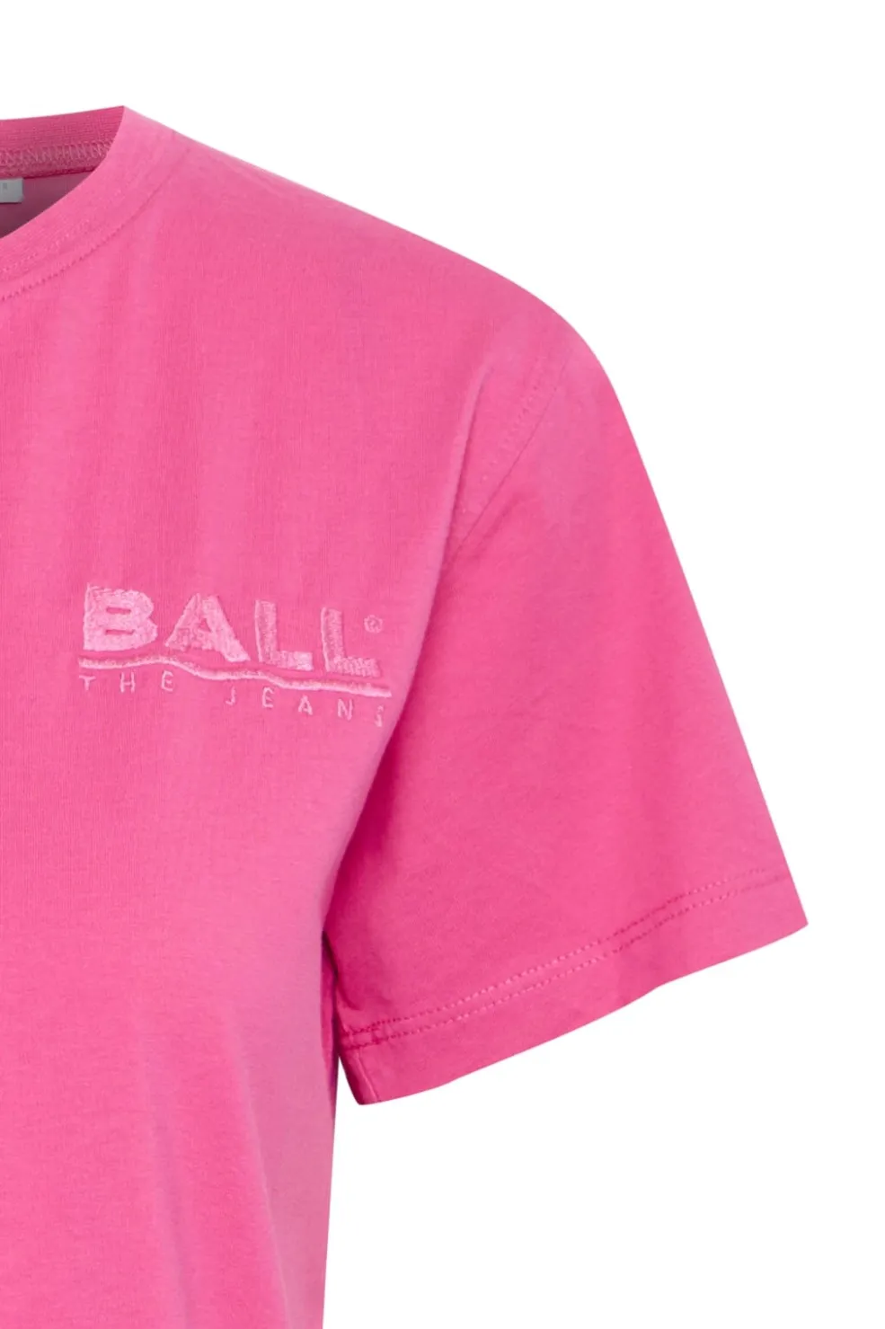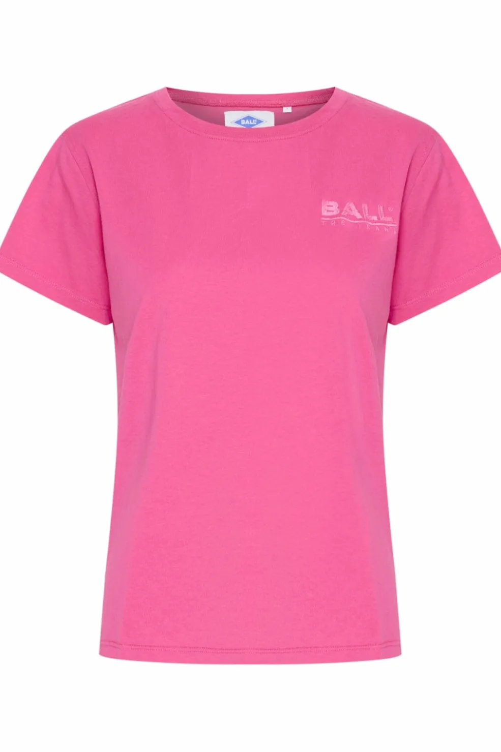 T-shirt fra Ball i en lys pink nuance. Den har et broderet logo på venstre side af brystet og en rund halsudskæring, der giver en enkel og ren stil.