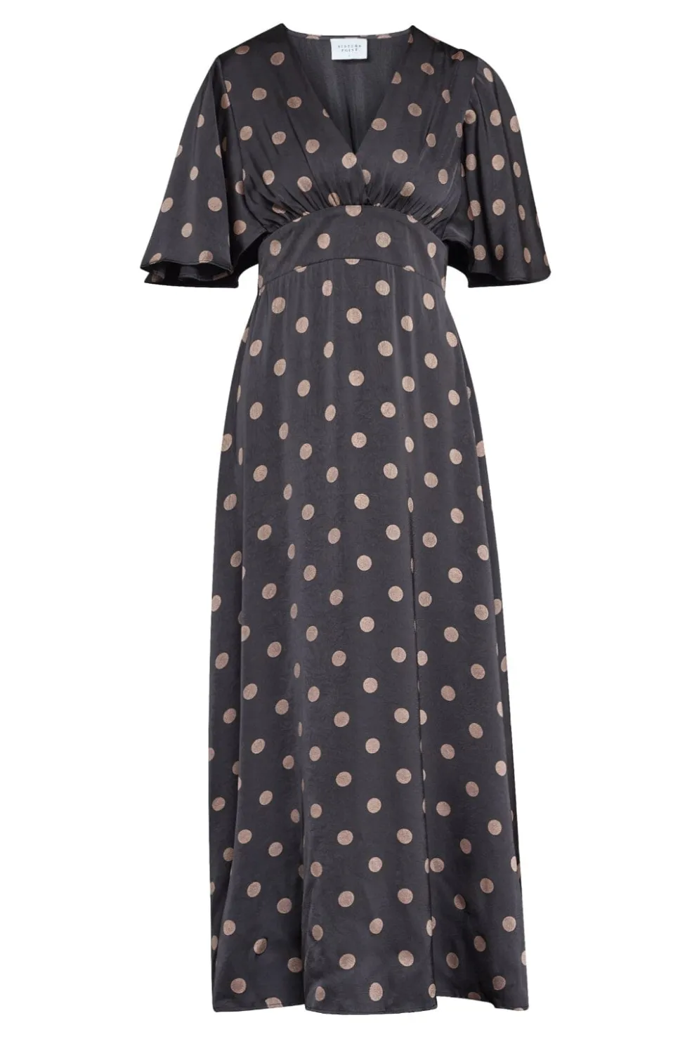 Sort kjole fra Sisters Point med prikkemønster i lyse nuancer. Kjolen passer til hverdagen, festlige sammenkomster og bryllupper.