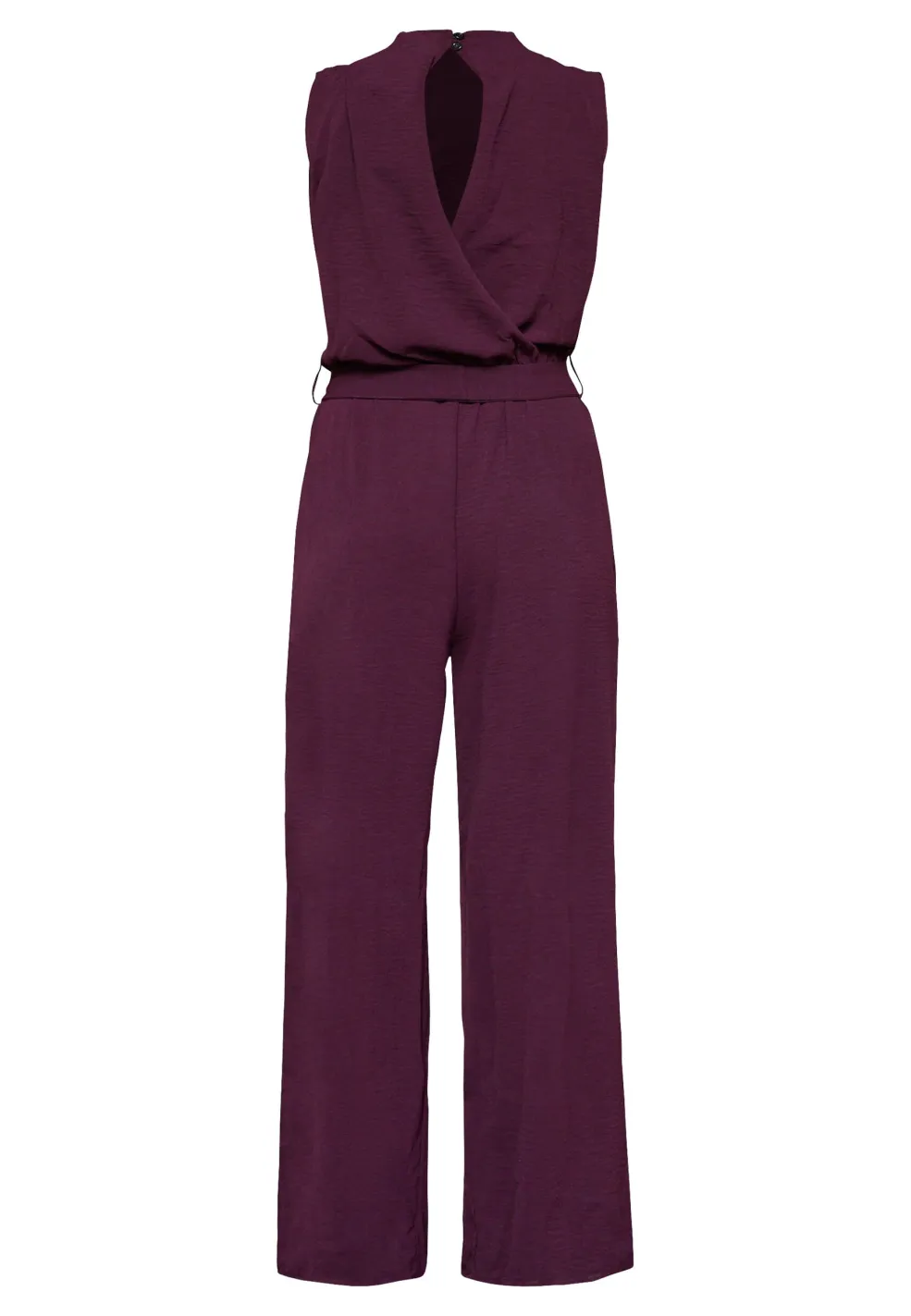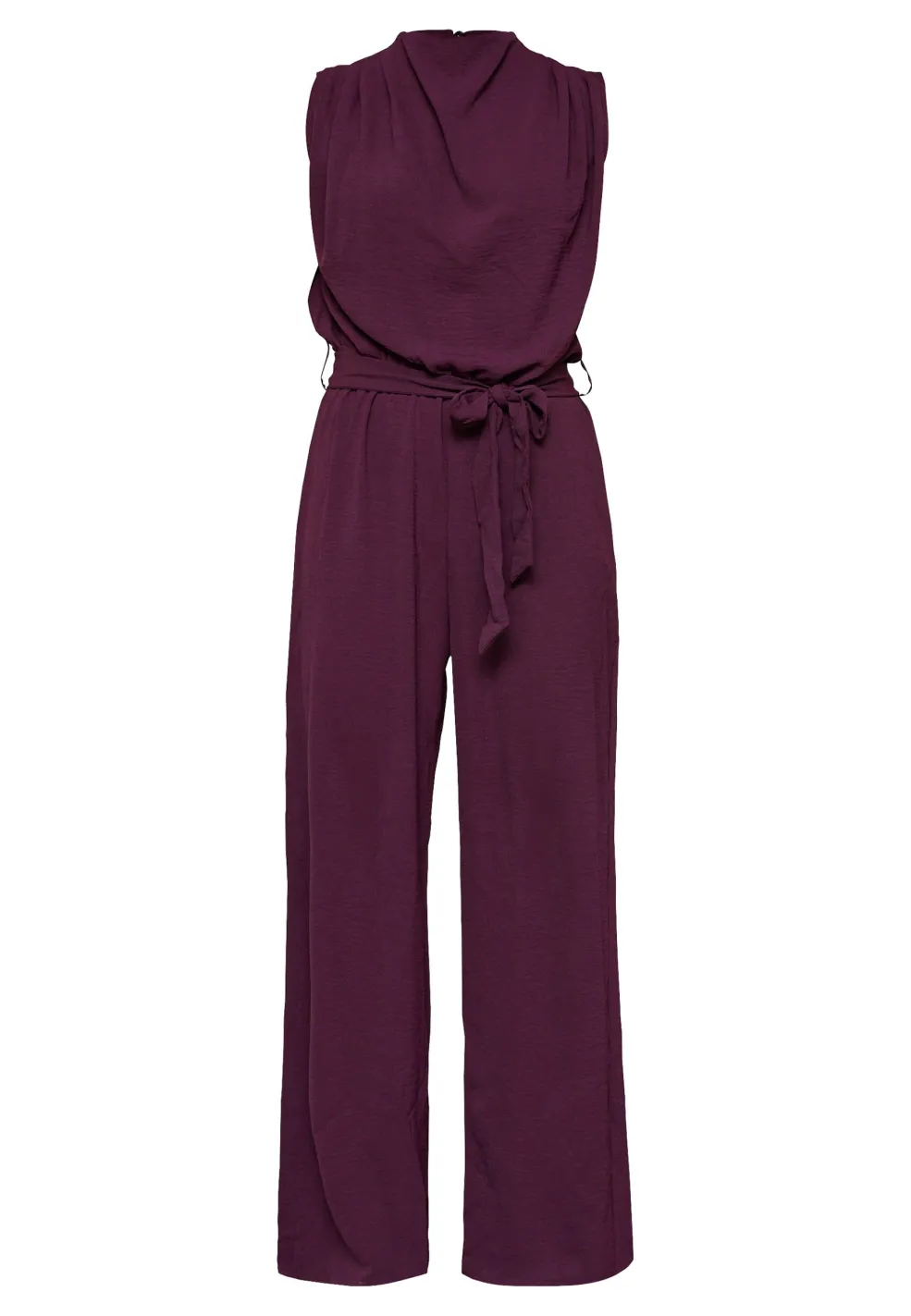 Jumpsuit fra Sisters Point i dyb bordeaux. Den er lavet af 100 % polyester og har en løs pasform med lange, lige ben.