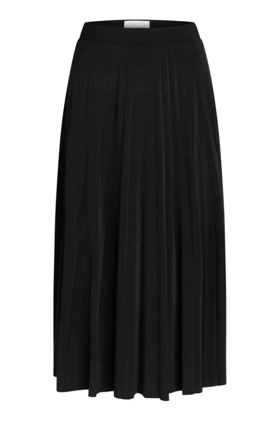 Sort plisseret nederdel fra Sisters Point med lang længde og høj talje. Det plisserede design og den sorte farve gør nederdelen nem at style til forskellige anledninger.
