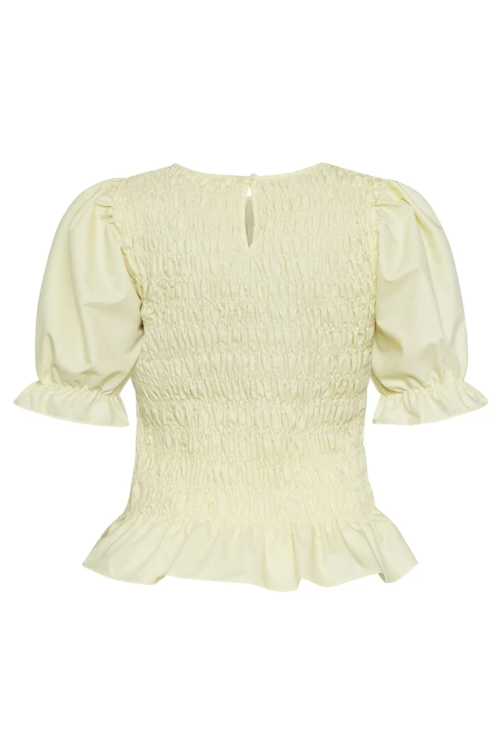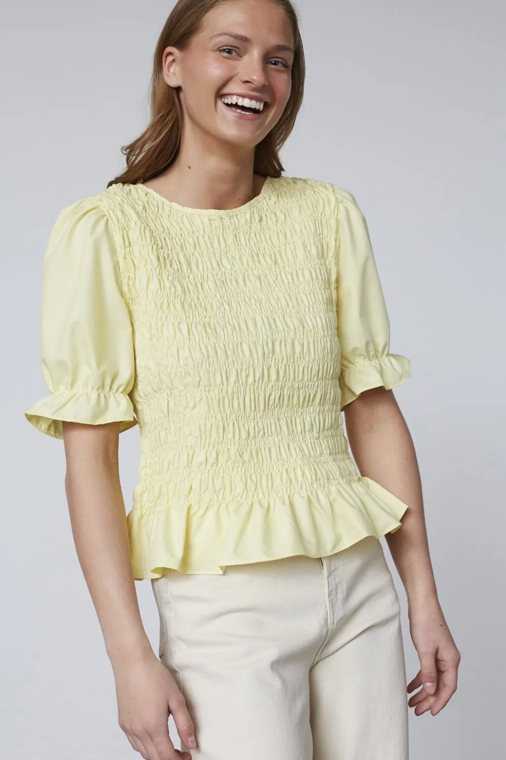 En lys gul bluse fra Sisters Point med et rent og enkelt design. Den lyse farve giver et friskt præg, og blusen har en enkel og tidssvarende stil.