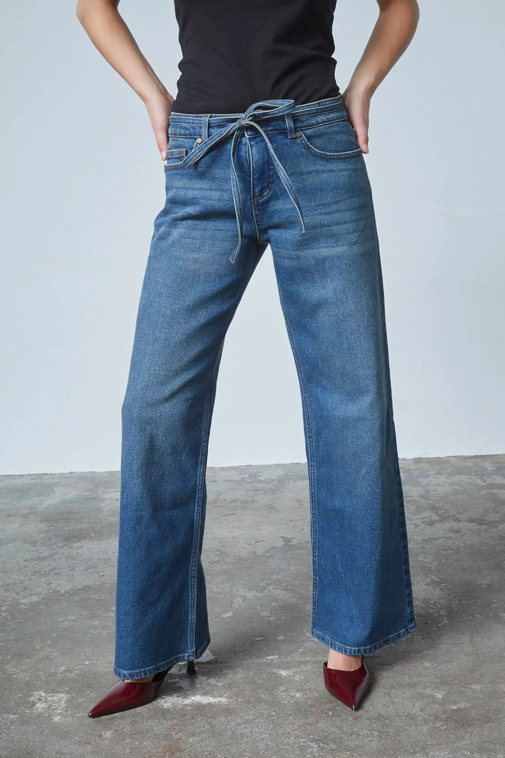 Blå jeans fra Sisters Point i en vintage blå nuance. Jeansene har høj talje og vide ben med en løs pasform.