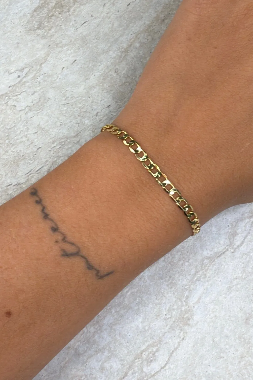 Forgyldt armbånd fra Molly&My Jewellery, lavet af rustfrit stål. Armbåndet har sammenlåsende led i et kædedesign med lobsterlås.