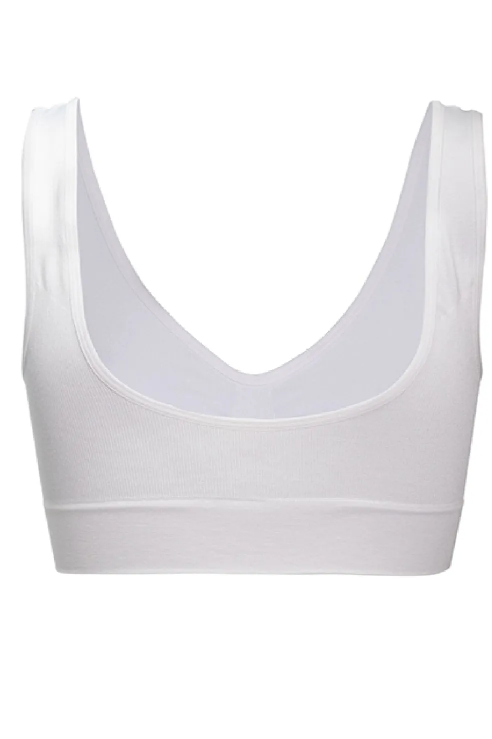 Hvid bra-top fra Soft Basic med brede stropper. Fremstillet af bambusviskose, der giver en blød og åndbar fornemmelse mod huden. Sælges i pakke med to stykker.
