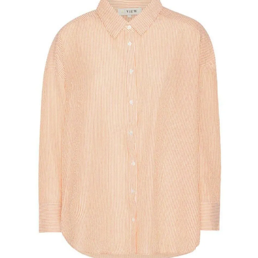 Stribet skjorte fra A-View i orange og hvid. Den løse pasform og det klassiske stribemønster giver skjorten et afslappet udtryk, der passer til mange anledninger.