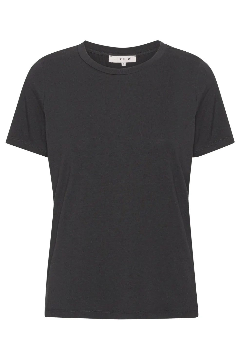 Sort top fra A-View med korte ærmer og rund hals. Toppen har en tætsiddende pasform og er lavet af en blød materialeblanding med stræk.