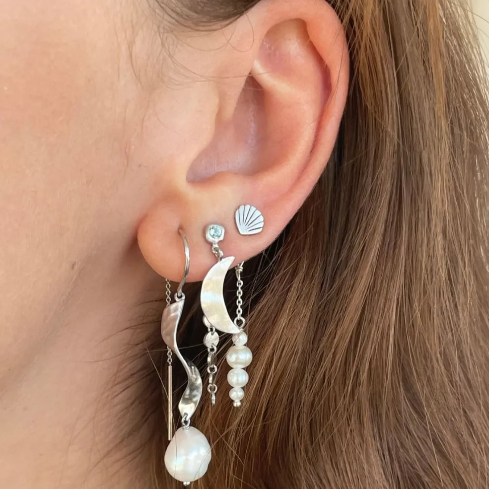 Mega cool ørestik med blå ædelsten og et smukt måne-vedhæng.