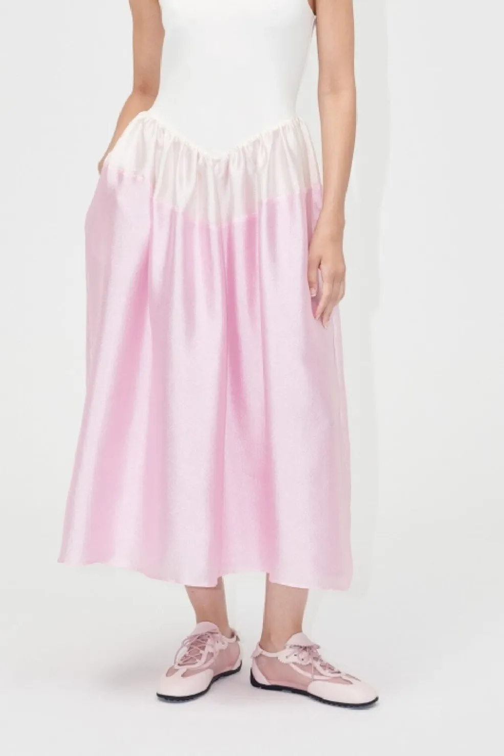 Lys pink ballet sneaker fra Stine Goya med mesh-paneler. Skoen kombinerer sporty design med bløde detaljer i nylon og kalveskind.
