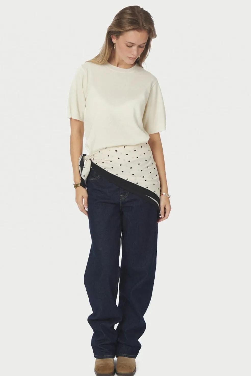 Tørklæde fra Neo Noir med store sorte prikker på en off-white baggrund. Tørklædet har en sort kant rundt om.
