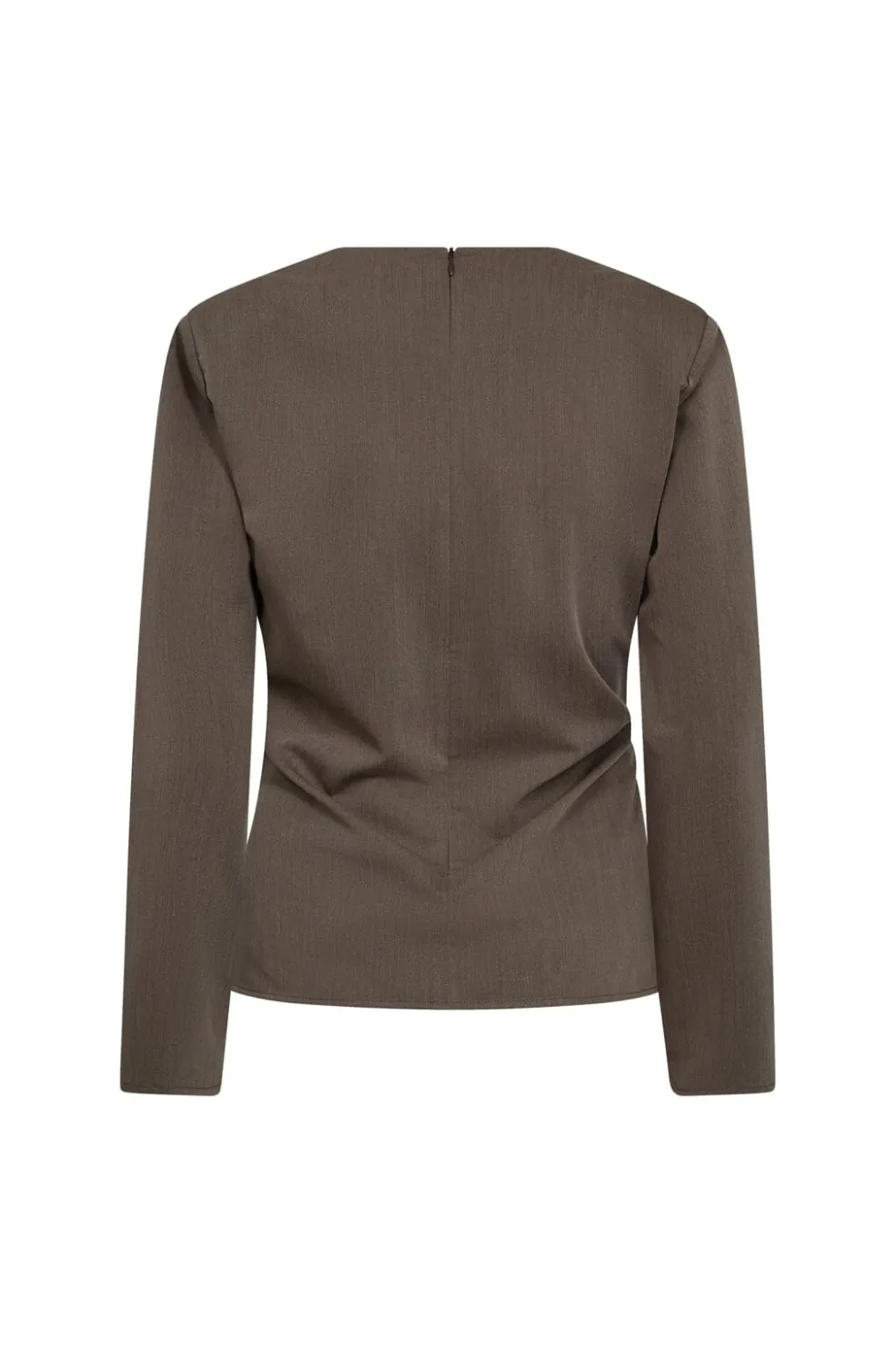 Brun bluse fra Co’Couture med bindedetaljer i taljen. Blusen har en ensfarvet brun farve og passer til både formelle og festlige begivenheder.