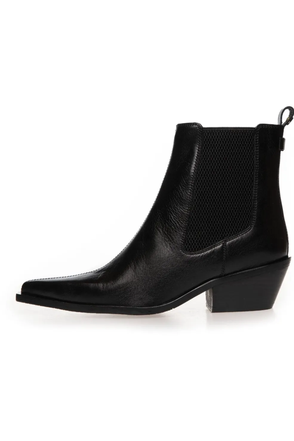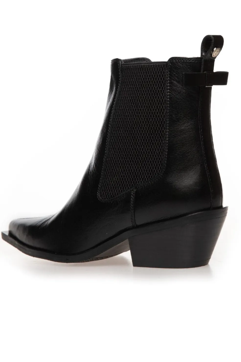 En rå og feminin chelsea-støvle med spids snude og markeret hæl. Det brede elastik i siderne gør den let at tage på og giver et klassisk udtryk, mens den lille sløjfe-detalje bagpå tilføjer et ekstra touch af charme.