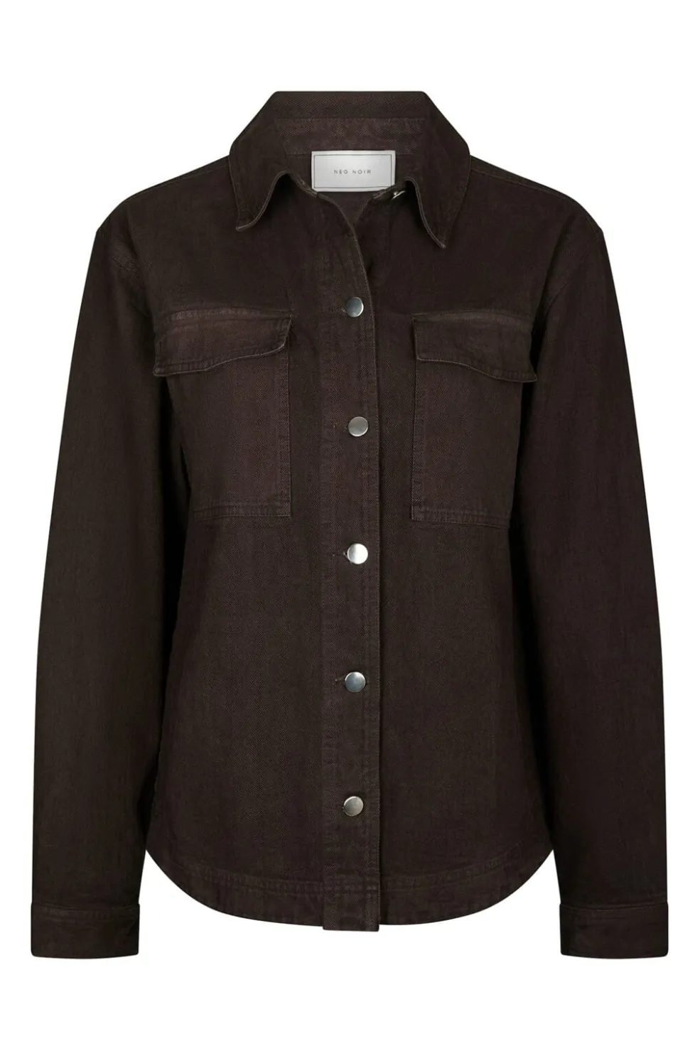 Mørkebrun jakke fra Neo Noir i kanvasmateriale. Jakken har en afslappet pasform med knapper foran og to brystlommer med klap. Den dekorative syning giver jakken et rustikt præg.