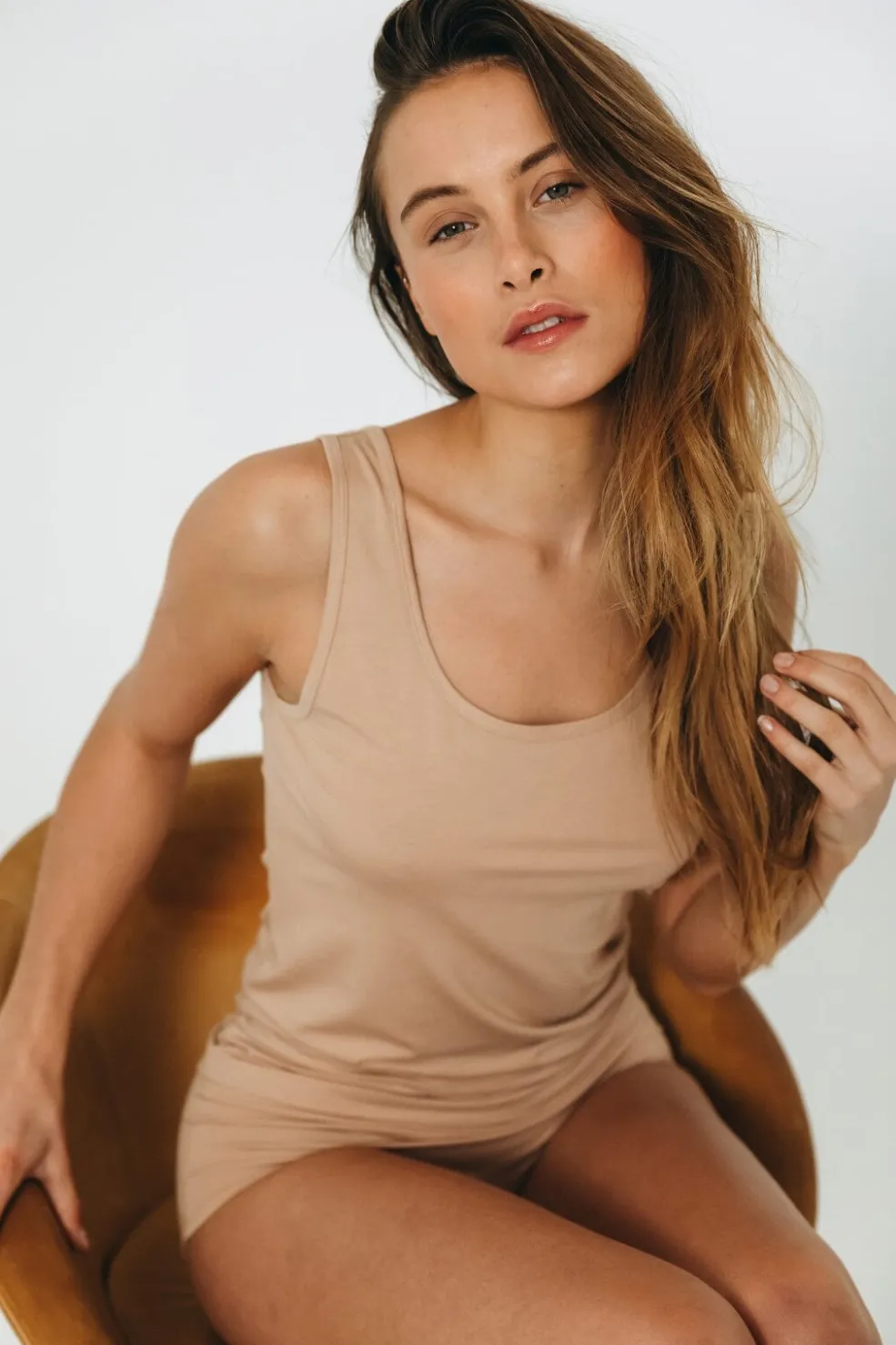 Top med brede stropper fra Decoy i en 2-pak. Toppen er lavet i en hudfarvet nuance.