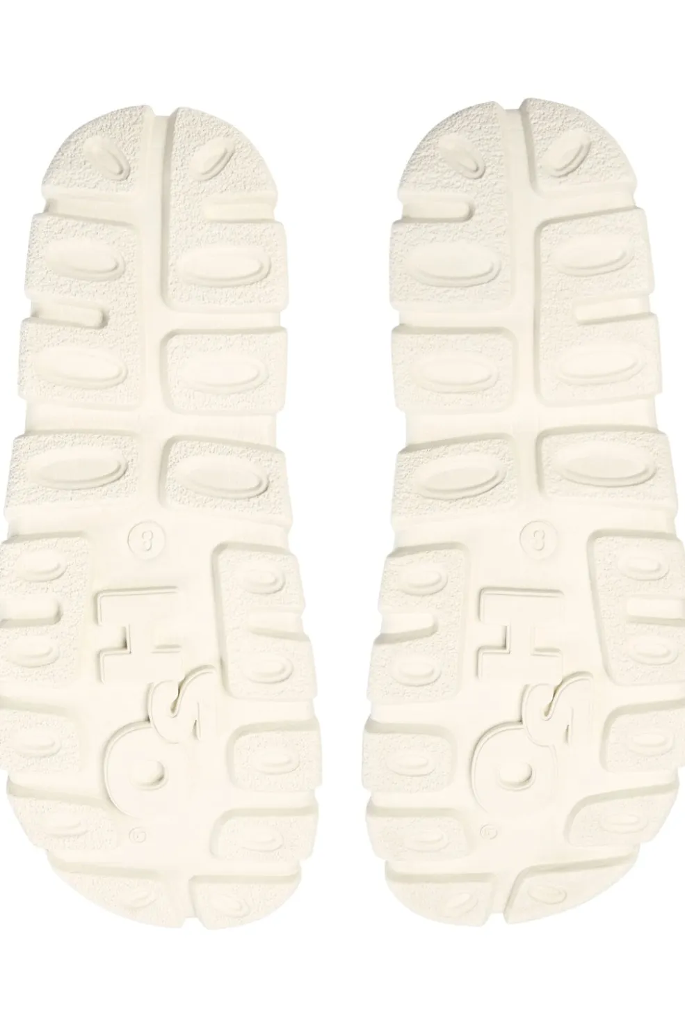 Hvid lukket sandal fra H2O med kraftig sål og ventilationshuller langs siderne. Sandalen er fremstillet af robuste materialer og har en solid konstruktion til udendørs brug.