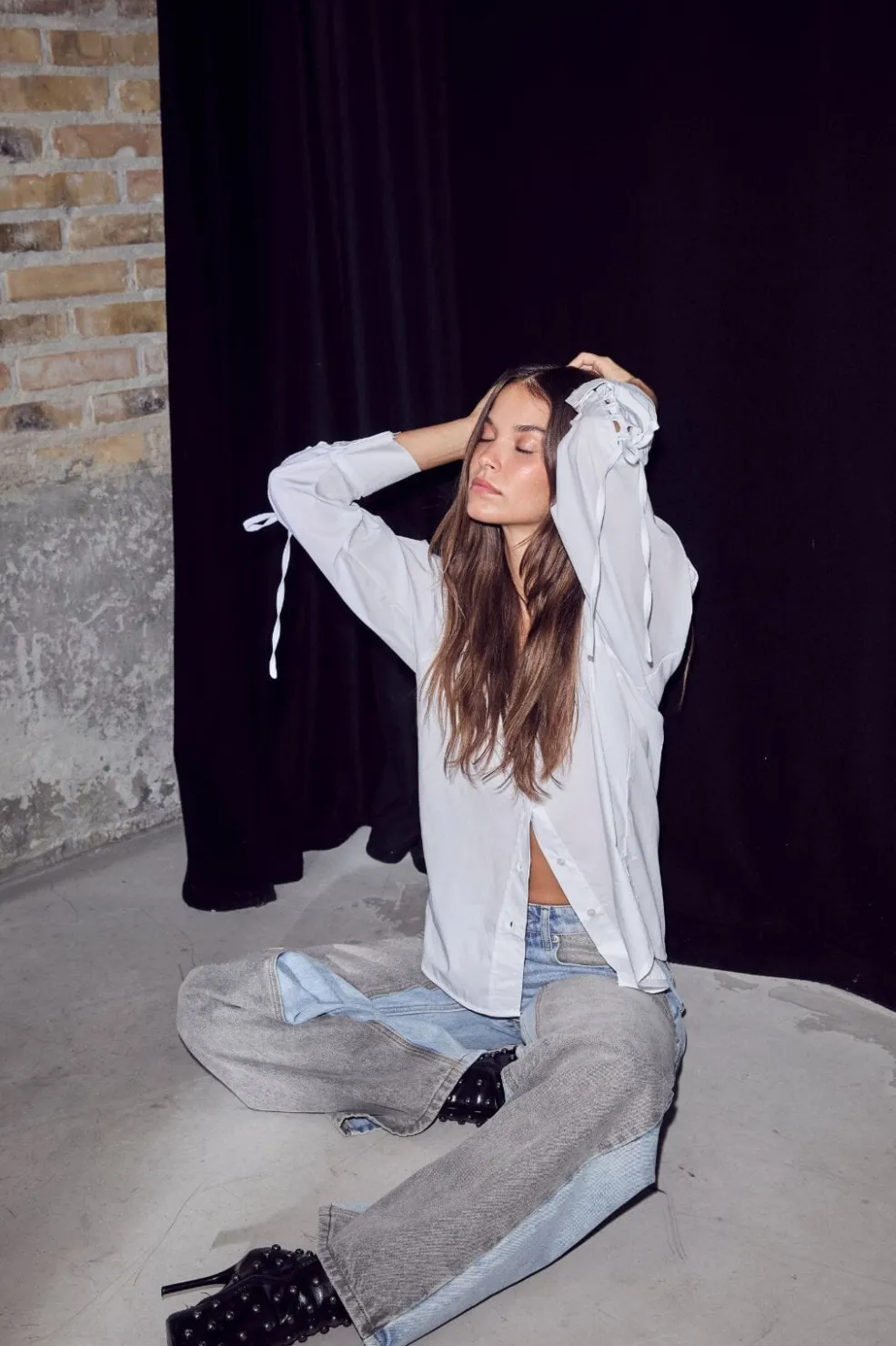 Jeans fra Haute L’Amitié i en to-tonet blå og grå farve. Den to-tonede farve giver jeansene et unikt udseende.