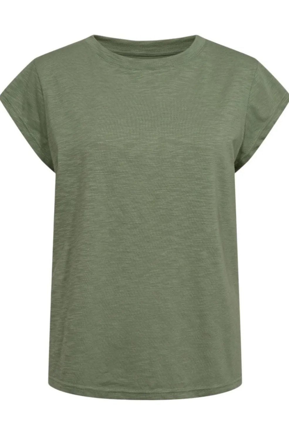 T-shirt fra Liberte i støvet lys armygrøn. Den har en løs pasform med korte ærmer og rund halsudskæring. Et enkelt design uden print eller mønstre.