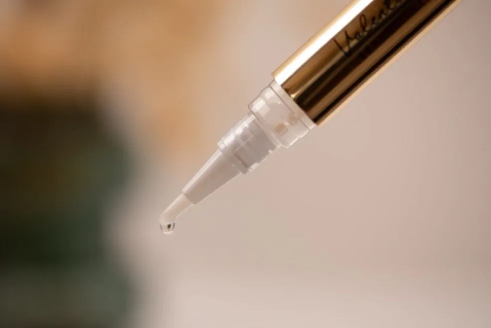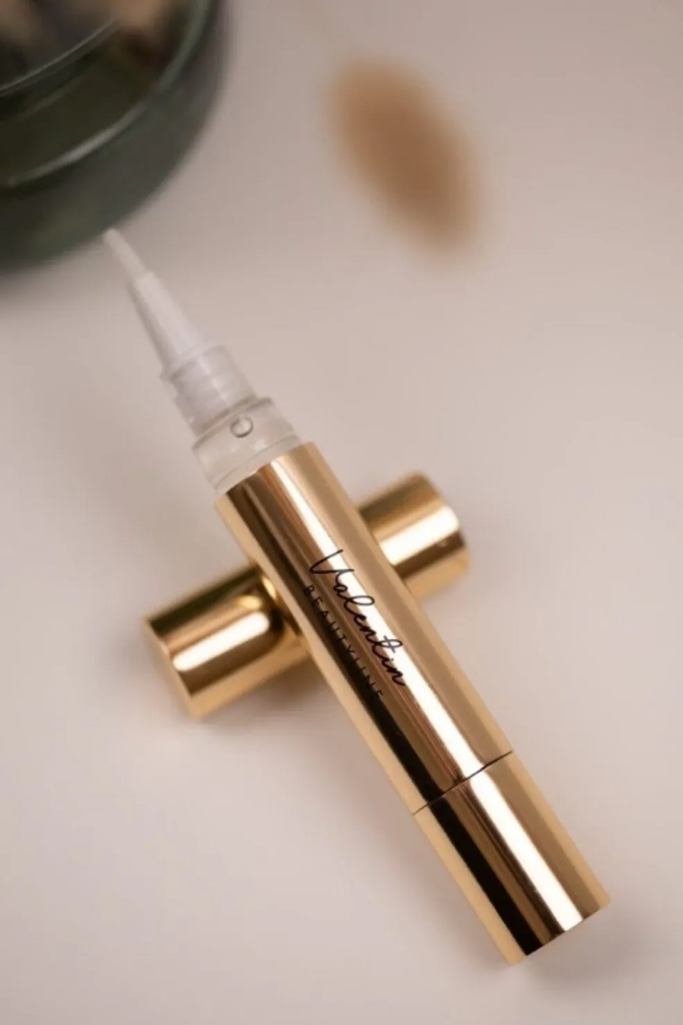 Oliepen til neglepleje fra Valentin Beautyline med 100% jojobaolie. Den gyldne pen har en klar applikatorspids og et praktisk drejesystem til præcis dosering.