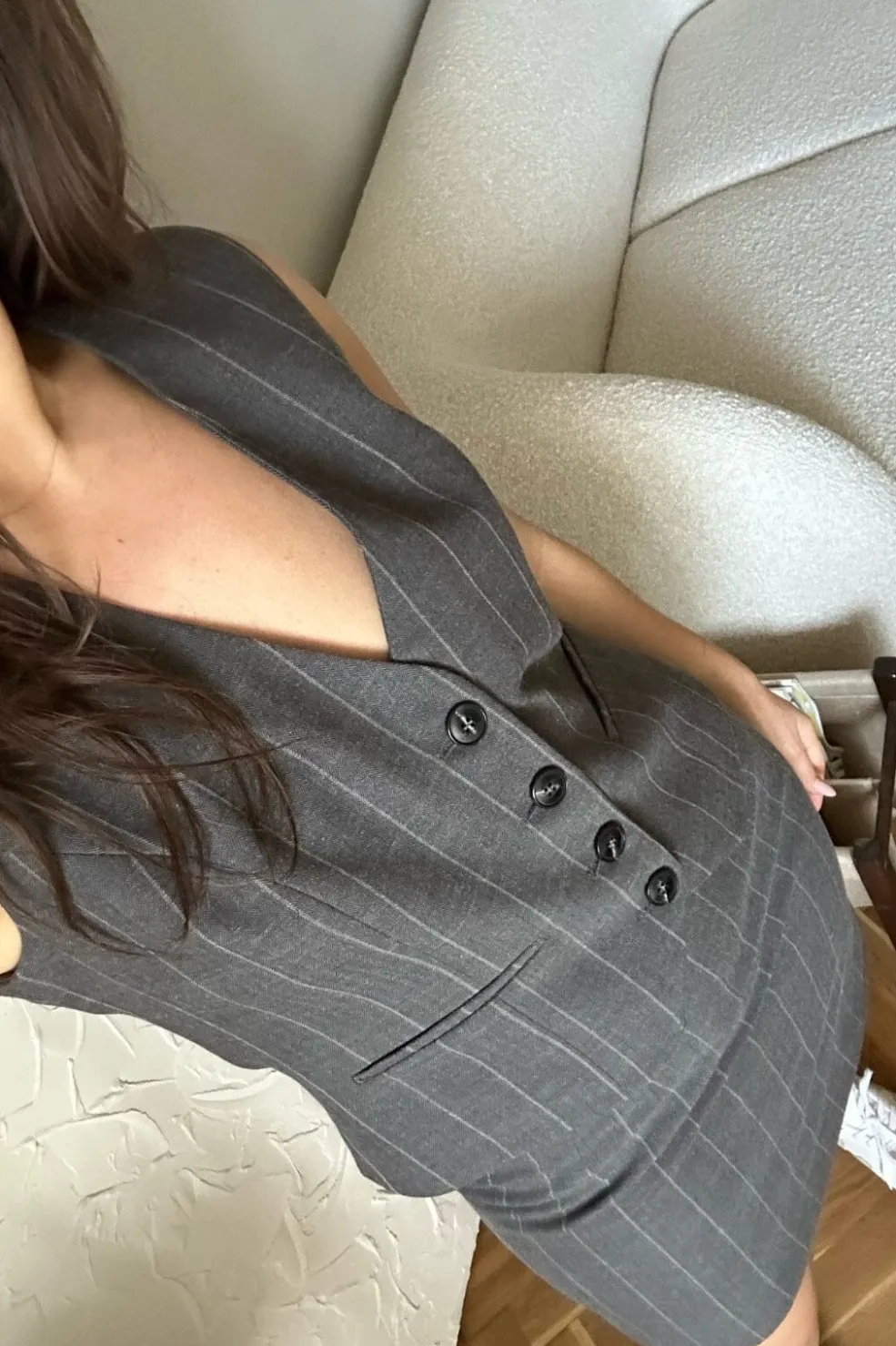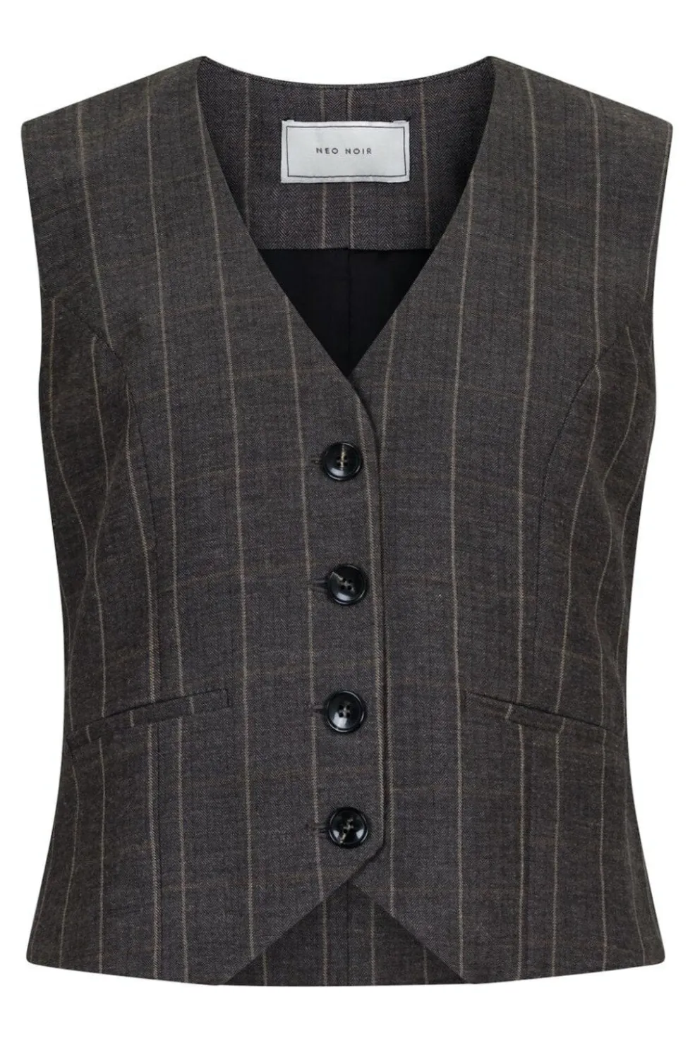 Ternet vest fra Neo Noir i mørkegrå. Den figursyede vest har V-halsudskæring, knaplukning foran og to lommer. Det bløde materiale har et klassisk ternet mønster.