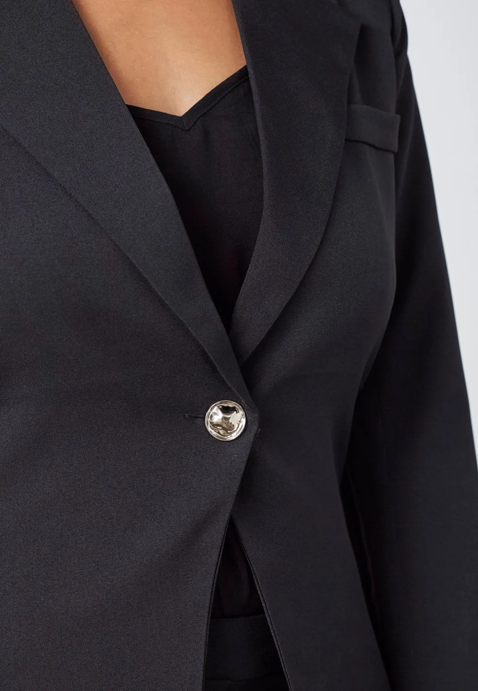 Sort blazer fra Sisters Point med figursyet snit. Blazeren passer til både formelle anledninger og afslappede hverdagssituationer.
