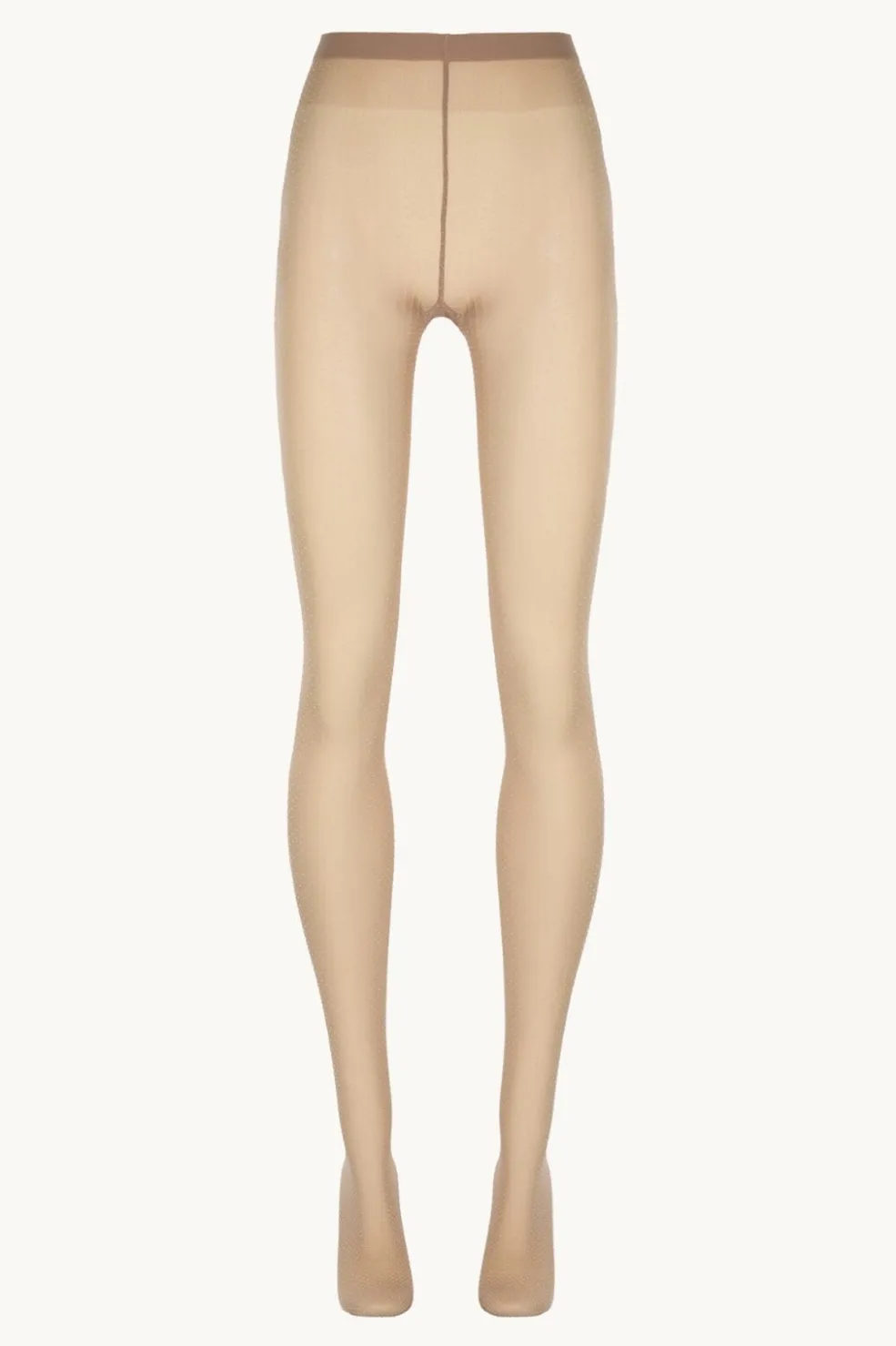 Strømpebukser fra Wolford med små hvide prikker på en lys nude-baggrund. Det fine mini-dot-mønster skaber et diskret og pænt udtryk.