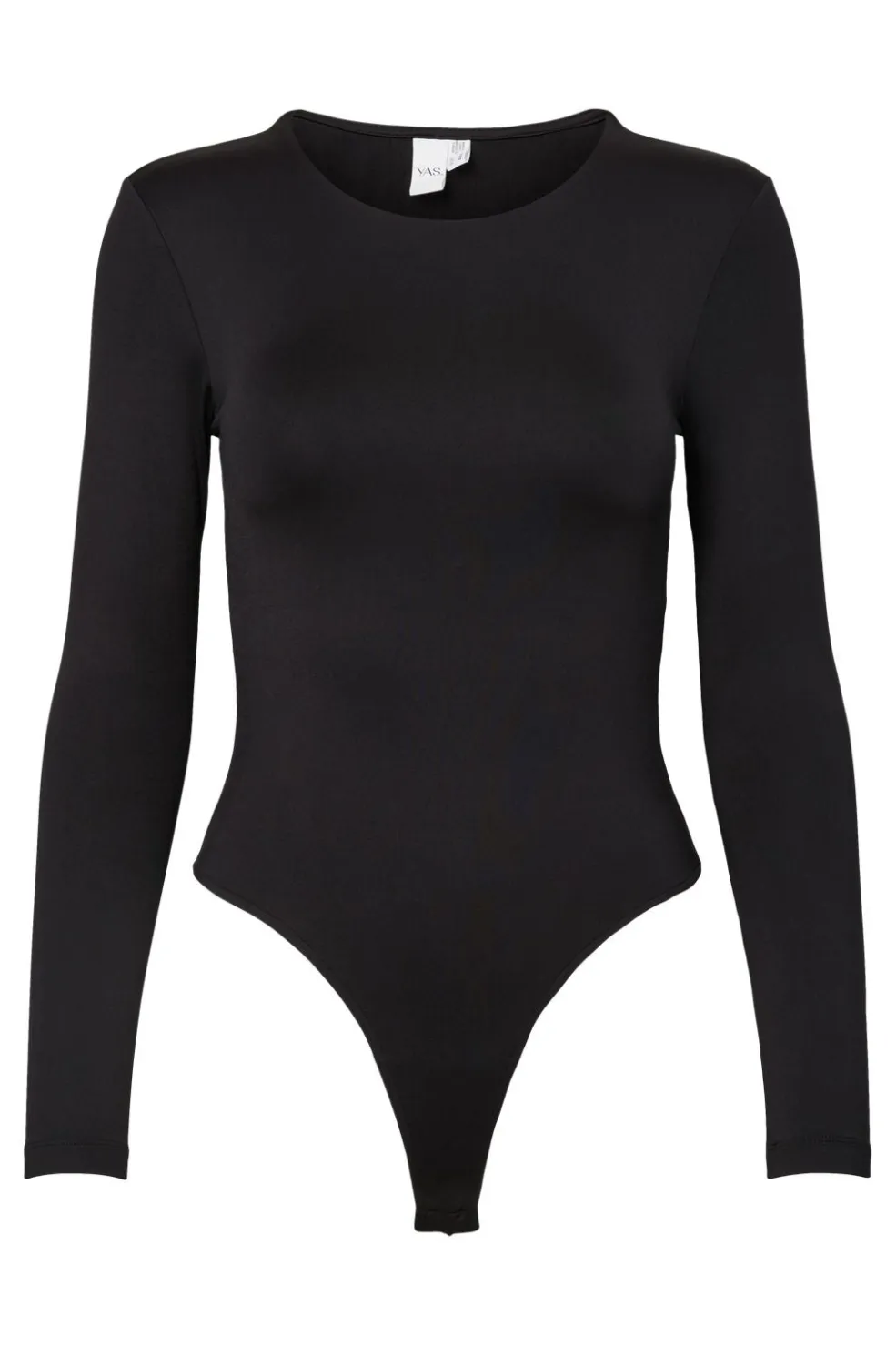 Sort body fra Y. A.S med høj halsudskæring og lange ærmer. Bodyen er lavet af genanvendt polyamid med stræk, der giver en tætsiddende pasform.